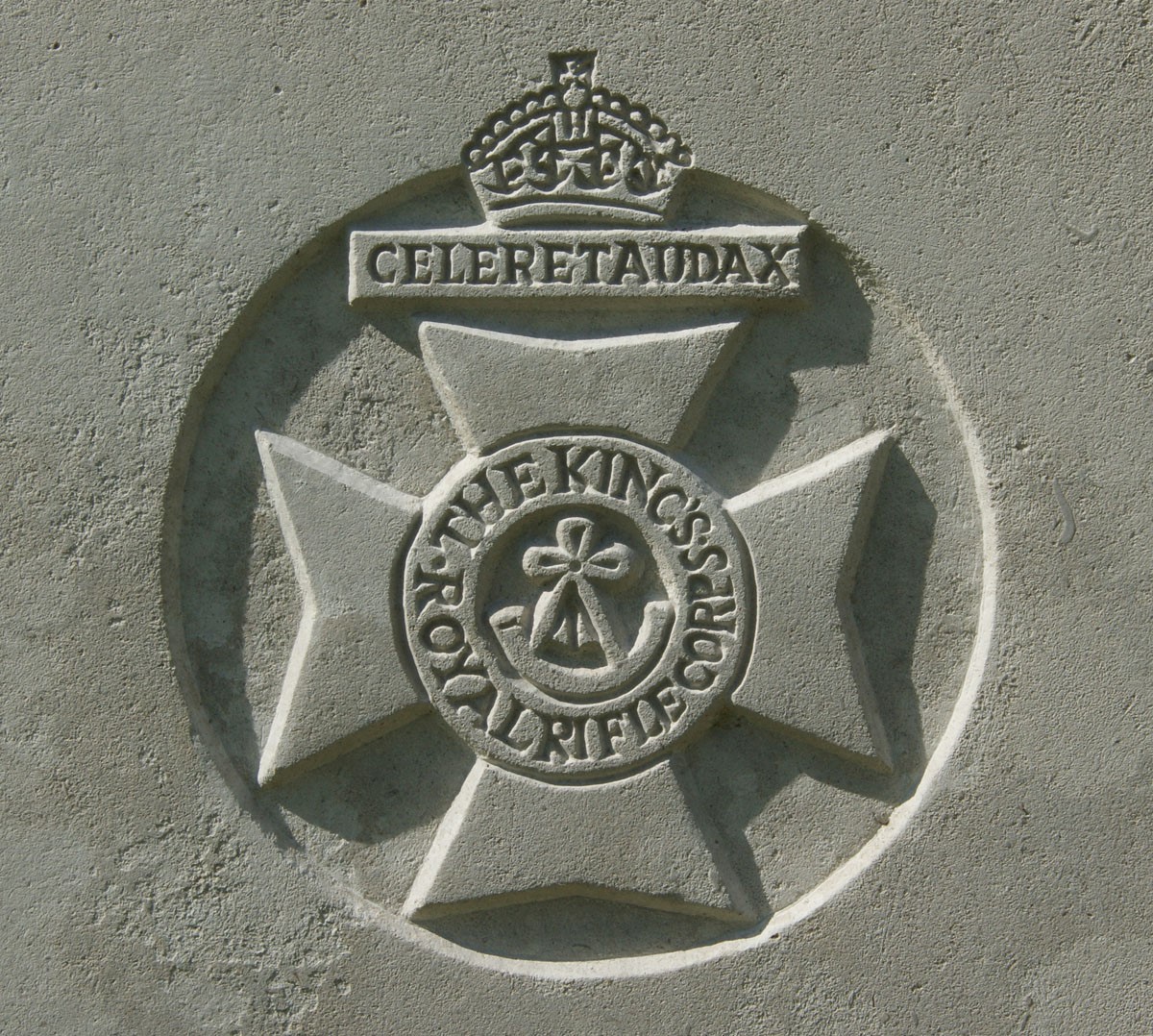 ![]() The regimental badge of the Kings Royal Rifle Corps, as used on CWGC headstones. |