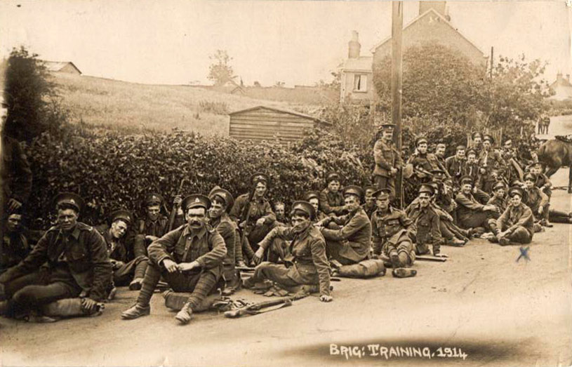 At 5.30pm on 4th August 1914, the day war was declared, the battalion received its mobilisation orders. The battalion departed Southampton for France on 12th August, landing at Rouen on 13th August, forming part of the 6th Brigade of the 2nd Division. The battalion moved first by train and then on foot northwards towards the German army, and by 23rd August were dug in not far from Mons. On 23/24th August the battalion had its first experience of artillery fire and there were some minor engagements but on 24th August, orders to retire were received; what became known as the Retreat from Mons had begun. In the evening of 25th August, the battalion crossed the bridge over the Sambre and arrived in the village of Maroilles. The 15th Hussars had been deployed to hold the bridge against the advancing Germans but came under great pressure and first one Berkshire company, and then the three others were sent forward to retake and hold the bridge. All efforts failed and before day break on 26th August the Berkshires were withdrawn and the retirement continued.