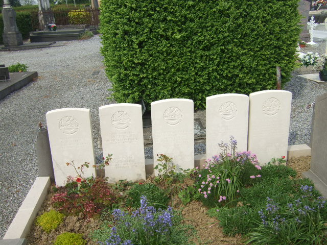 ![]() Five of the stones (each holding two names) on the mass grave at Maroilles. |